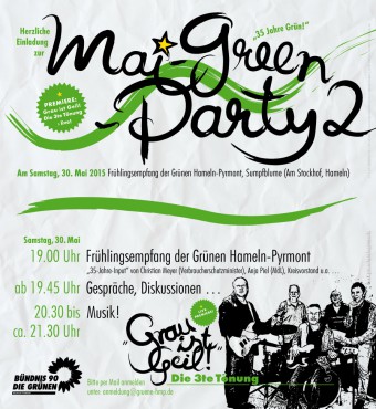 Anlässlich des 35-jährigen Bestehens des Kreisverbandes Hameln-Pyrmont lädt der Kreisverband herzlich alle Interessierten zum politischen Austausch und gemeinsamem Feiern am Samstag, 30.05., in die Hamelner Sumpfblume ein. Mit dabei sind u.a. der niedersächsische Verbraucherschutzminister Christian Meyer sowie die Fraktionsvorsitzende der Grünen im Landtag Anja Piel.