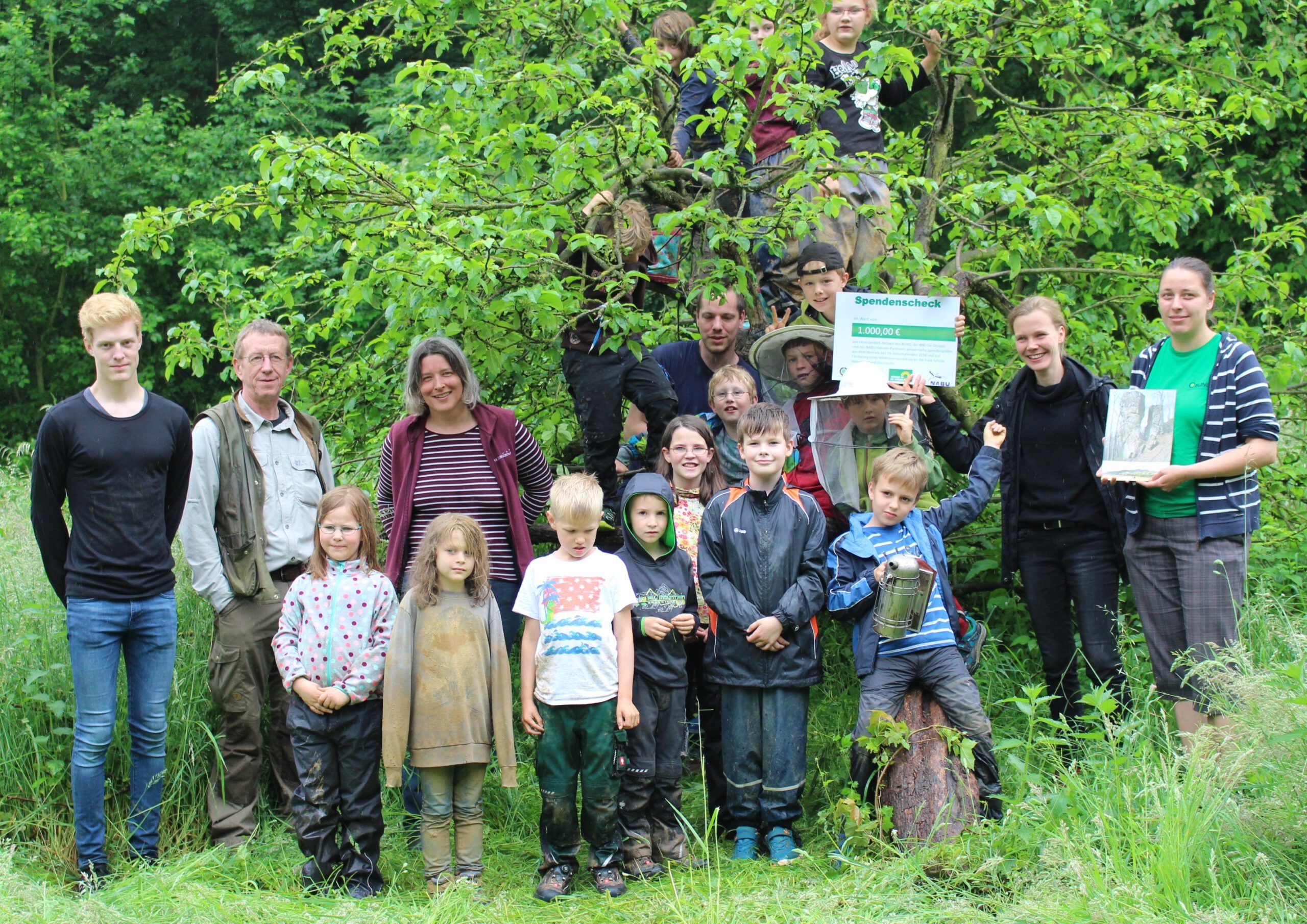 BUND, NABU und GRÜNE hatten im vergangenen Jahr den Ith-Naturkalender 2016 aufgelegt. 1.000,-€ des Erlöses haben die Initiatorinnen Anja Nowack und Britta Kellermann am Mittwoch an die Kinder der Freien Schule Weserbergland übergeben. “Mit der Spende kann unser Bienenprojekt jetzt starten!” freut sich die Schulleiterin Sandra Richards, die sich im Namen der Kinder herzlich dafür bedankt. Der Förster und erfahrene Hobbyimker Jürgen Rebers wird das Projekt auf einer Streuobstwiese am Ithkopf begleiten. Die Kinder haben immer mittwochs ihren Waldtag und wollen sich dann auch um die Bienen kümmern. Von dem Kalenderüberschuss soll eine Grundausstattung, wie Bienenbeuten, Schutzhüte und Werkzeug für die Kinder angeschafft werden.
