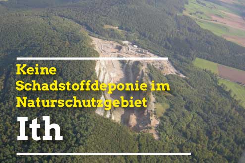 Die Kreisvorsitzende aus Hameln-Pyrmont, Britta Kellermann, machte deutlich, dass es hier nicht um ein kleines gallisches Dorf am Ith gehe, das keine Deponie in seiner Nachbarschaft wolle: „Es geht um das Überleben der Arten und letztlich auch um unser eigenes Überleben. Durch unseren Lebensstil haben wir die Arten in solche rar gewordenen Lebensräume verdrängt und dafür gesorgt, dass sie auf Sekundärlebensräume, wie den Steinbruch Ith angewiesen sind. Wenn wir Artenschutz Ernst meinen, dann können wir jetzt Verantwortung übernehmen, damit diese seltenen Arten sich eines Tages von diesen Rückzugsgebieten ausgehend wieder ausbreiten können.“