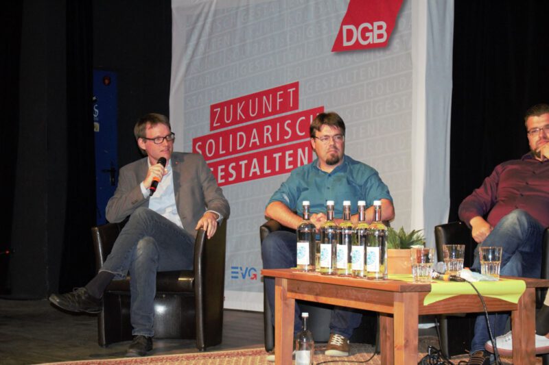 Auf Einladung des DGB Hameln-Pyrmont nahmen unser Bundestagskandidat Helge Limburg und unser Hamelner Oberbürgermeisterkandidat Sven Kornfeld am Sommerempfang in der Sumpfblume teil. Auch die ehemalige Fraktionsvorsitzende der GRÜNEN im nds. Landtag, Anja Piel war in ihrer neuen Funktion als Mitglied im DGB-Bundesvorstand mit von der Partie.