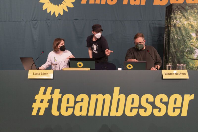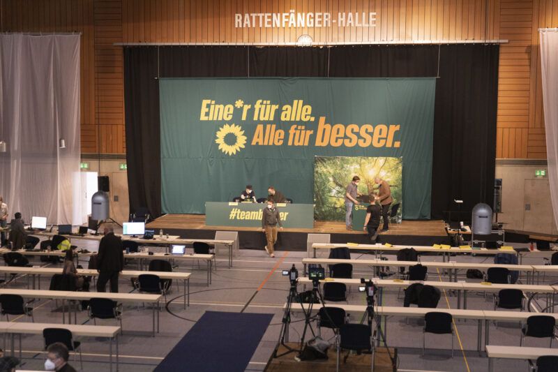 Bei der Wahl in der Hamelner Rattenfängerhalle waren nur die Kandidierenden vor Ort, während die Delegierten von zu Hause aus die insgesamt 80 Personen umfassende Landesliste wählten.